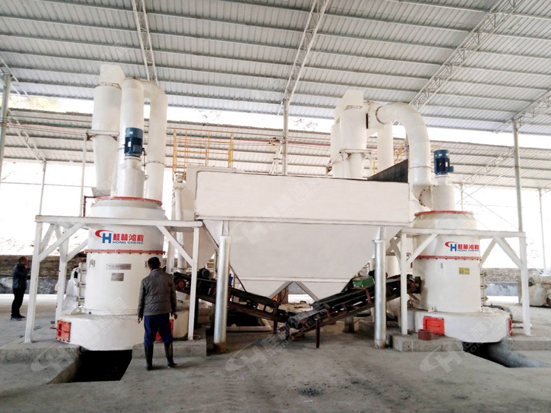 湖南客戶重鈣粉磨粉生產(chǎn)線 重鈣雷蒙磨現(xiàn)場(chǎng)